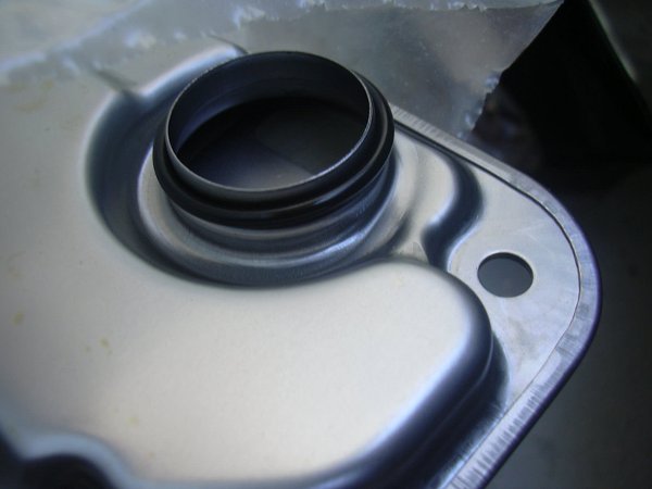 ATF内部のフィルターです。手前の大きな穴から吸い込み、金網のスクリーンを通して、バルブボディへと入っていきます。