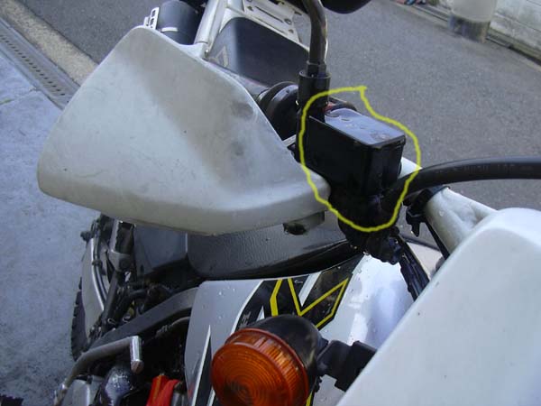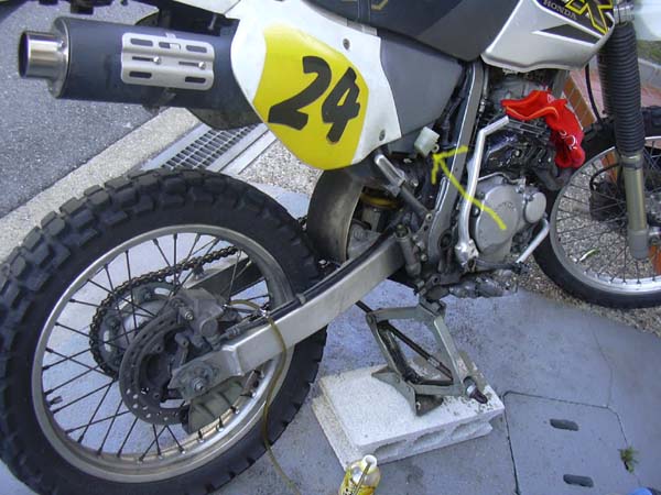 これはリヤブレーキ。リヤのマスターシリンダーのリザーブタンクも外しやすいし、宙ぶらりんでも簡単に作業ができました。 |