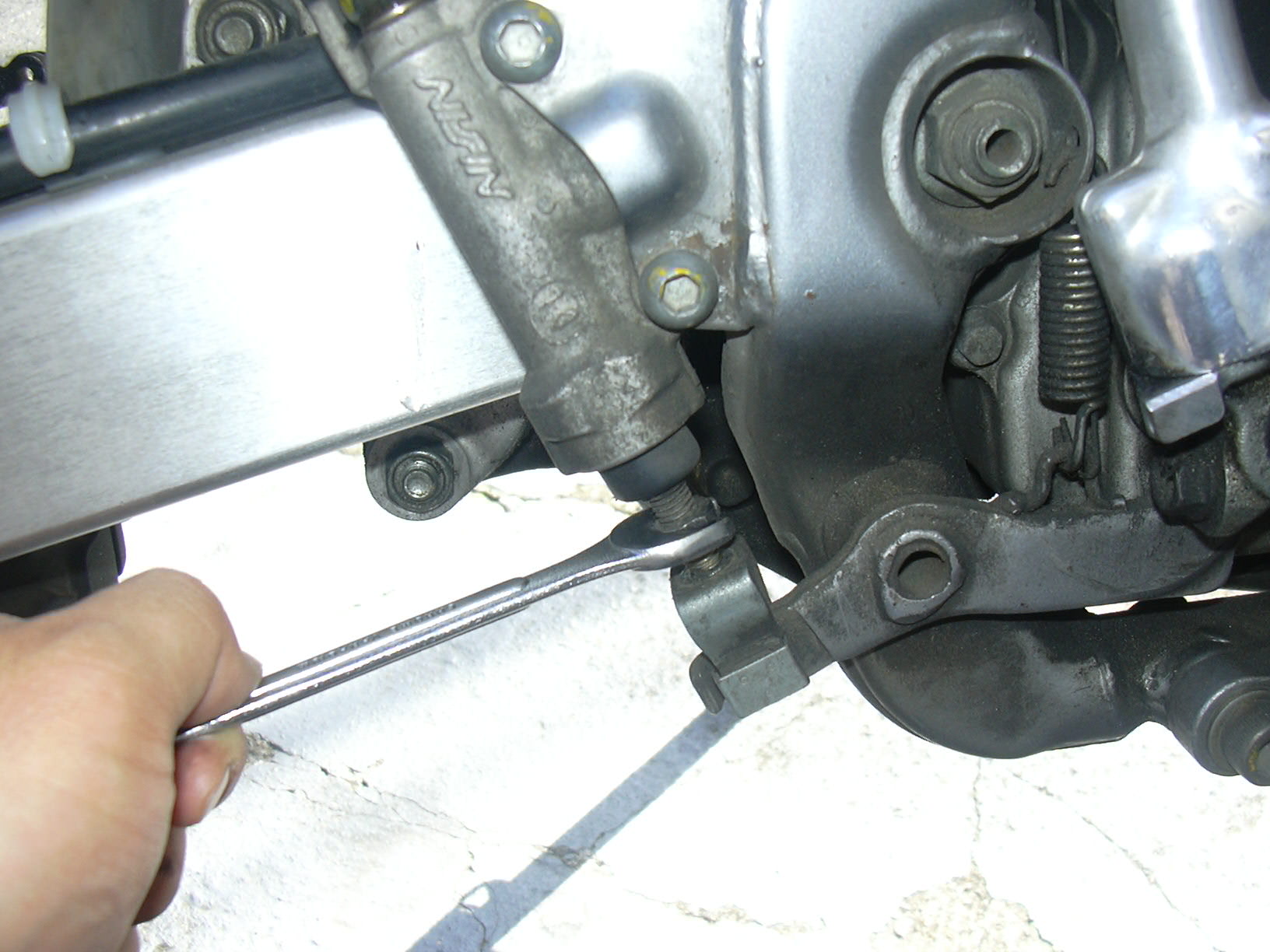 マスターシリンダー下部のブレーキペダルのナットを取り外します。