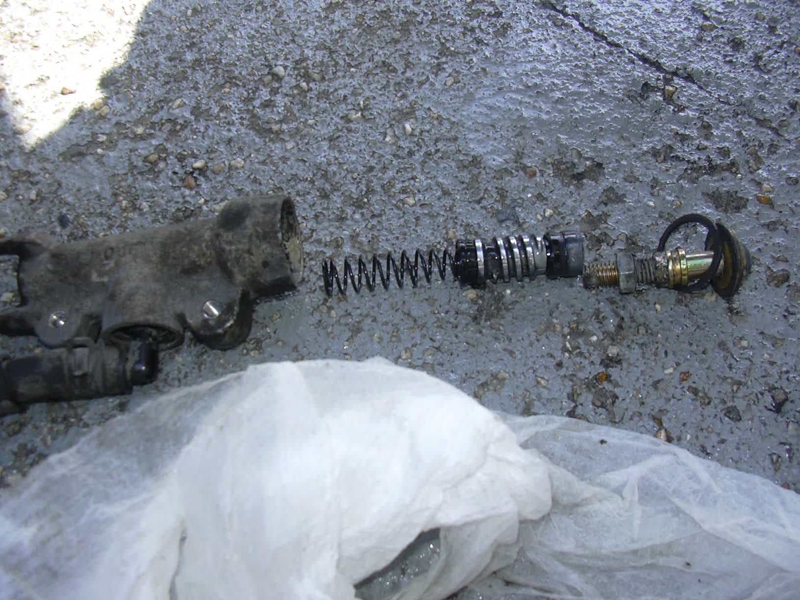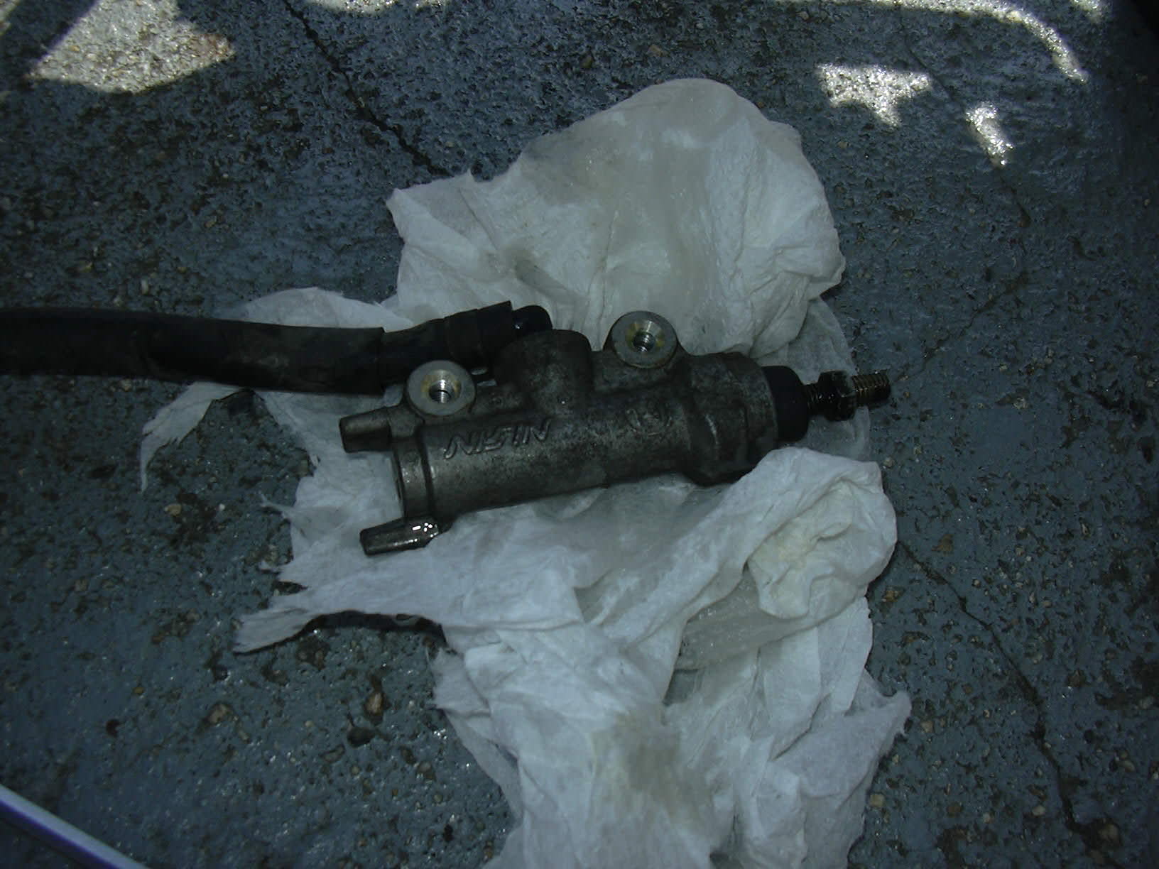 ブレーキフルードがこぼれるので、紙のウエスと