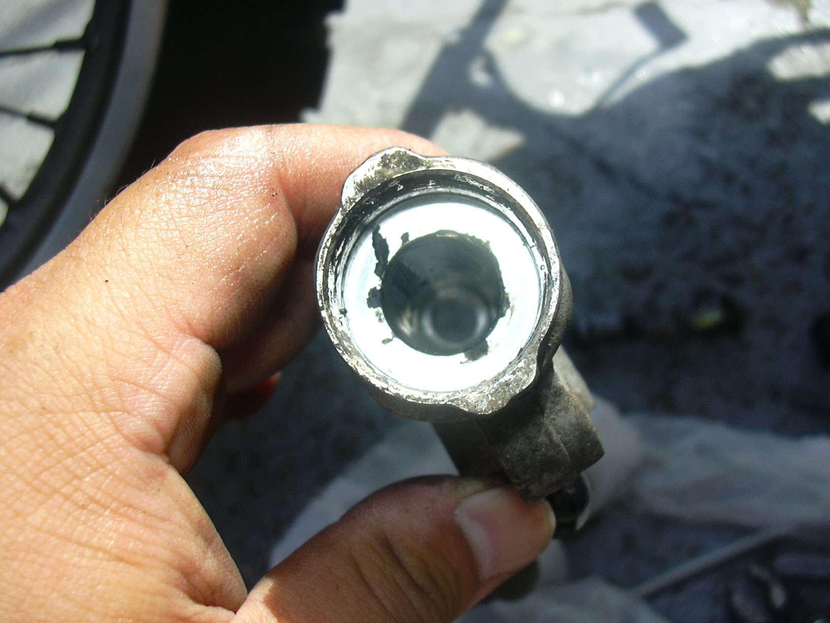 取り外した後の、シリンダーの様子です。手前の黒いしみは