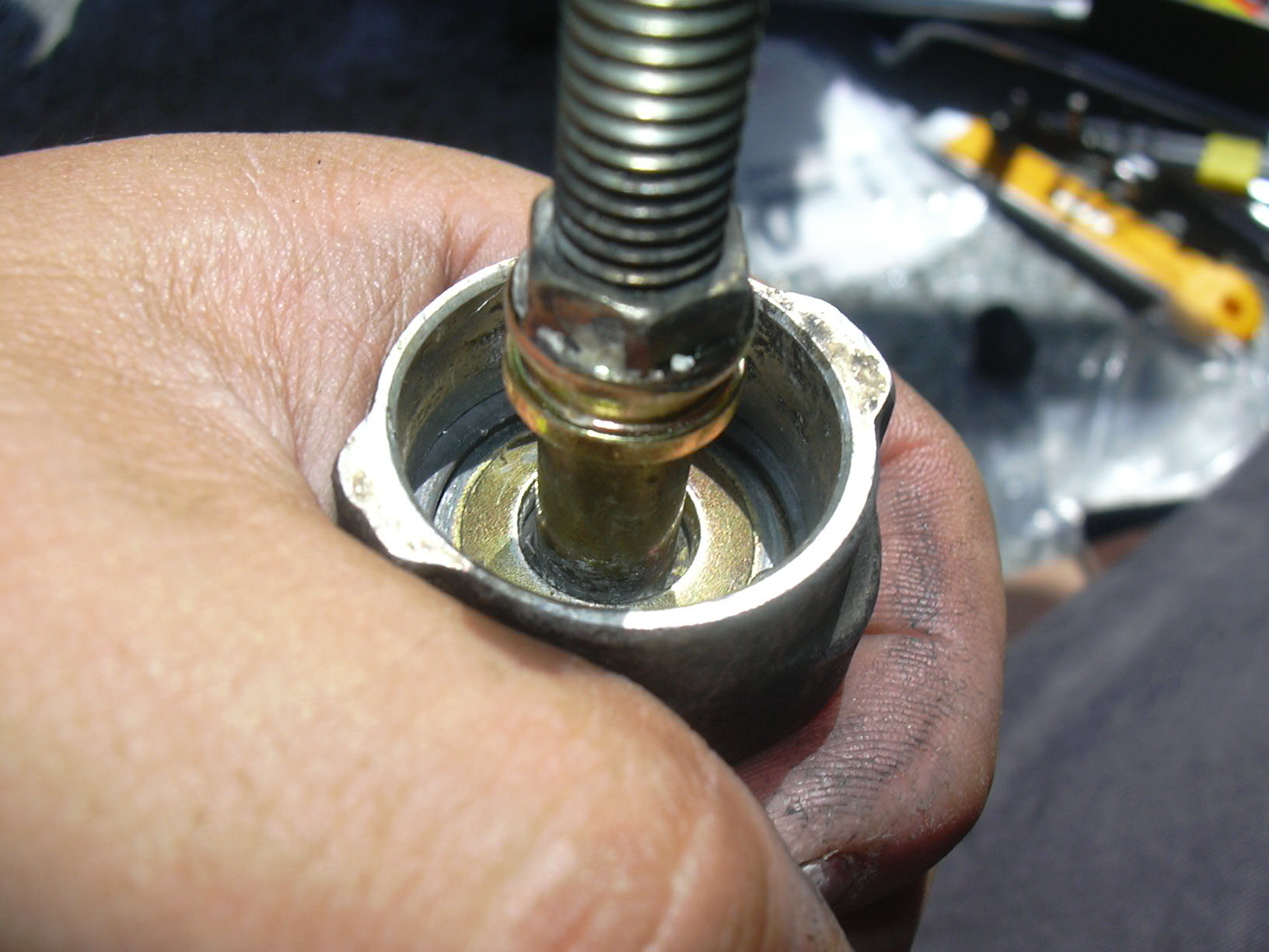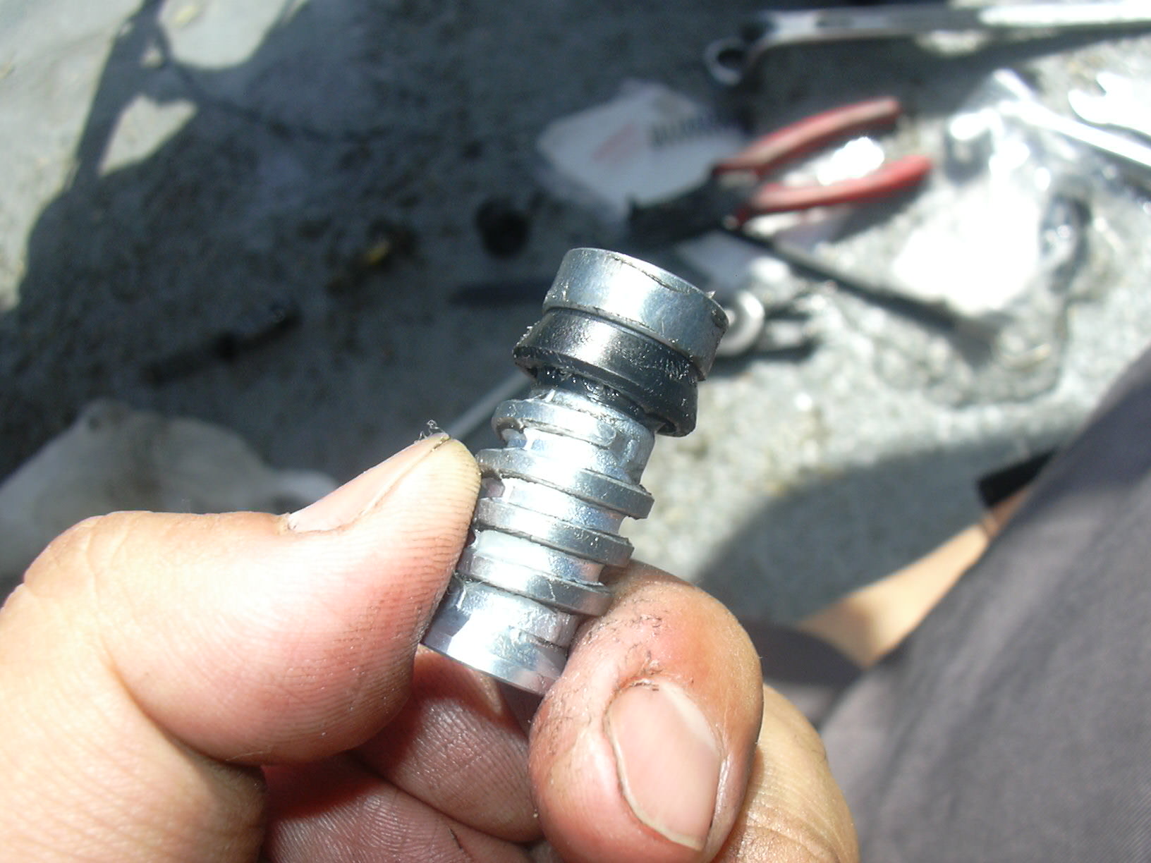 アルミのパッキンはつぶれることで、密閉するようになっています。