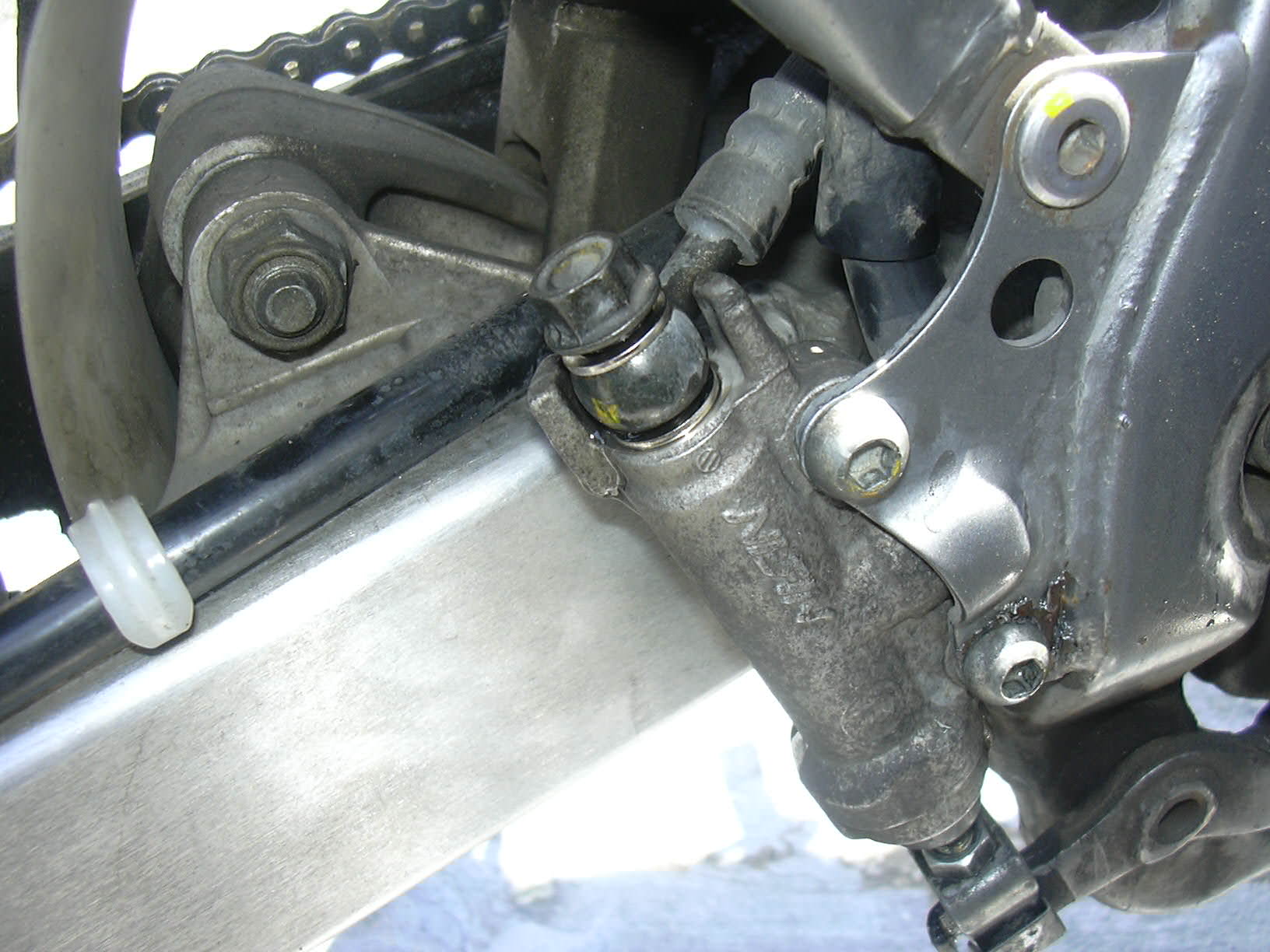 まずはシリンダー本体をフレームのボルトに固定して、